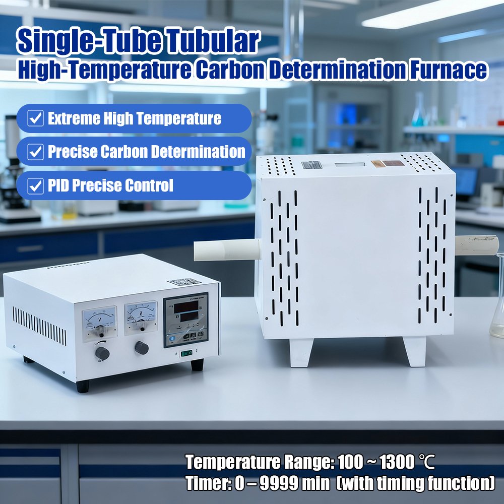 The 1300°C Single-Tube Tubular High-Temperature Carbon Determination Furnace is a precision laboratory instrument designed for the accurate analysis of carbon content in various materials, primarily metals, alloys, and inorganic solids. Its core function is to combust a sample at an extremely high temperature in a controlled oxygen-rich atmosphere, converting all carbon present into carbon dioxide (CO2) for subsequent quantitative measurement.