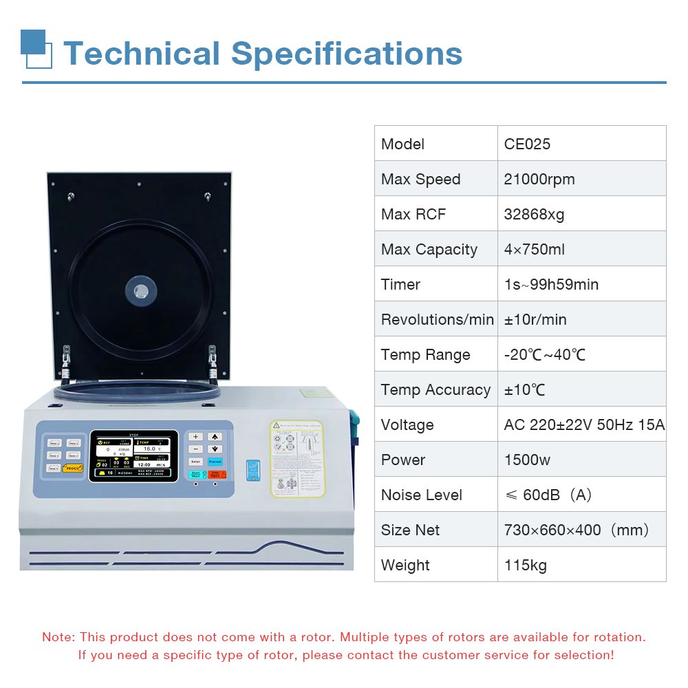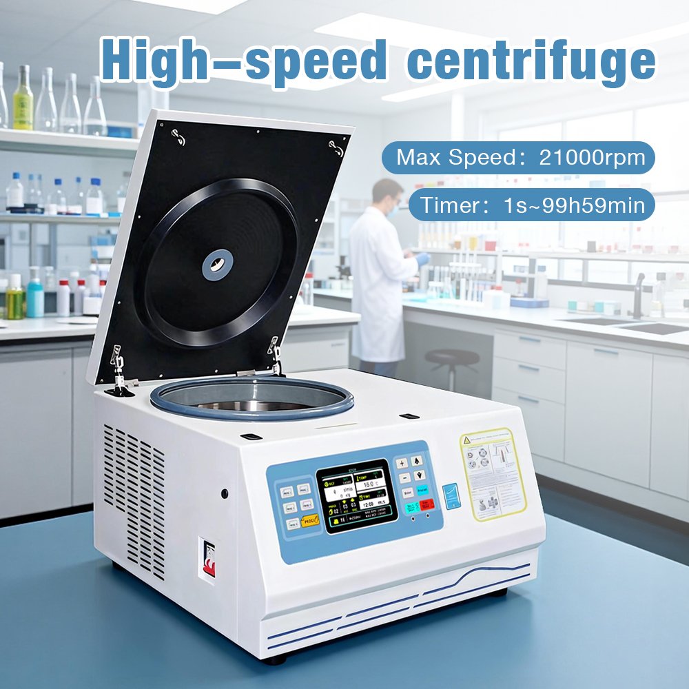 This 21000rpm 4×750ml Desktop High-Speed Centrifuge is a powerful and compact laboratory instrument designed for efficient sample processing in space-constrained environments. Its standout feature is a maximum speed of 21,000 revolutions per minute, enabling rapid sedimentation of fine particles and cellular components.