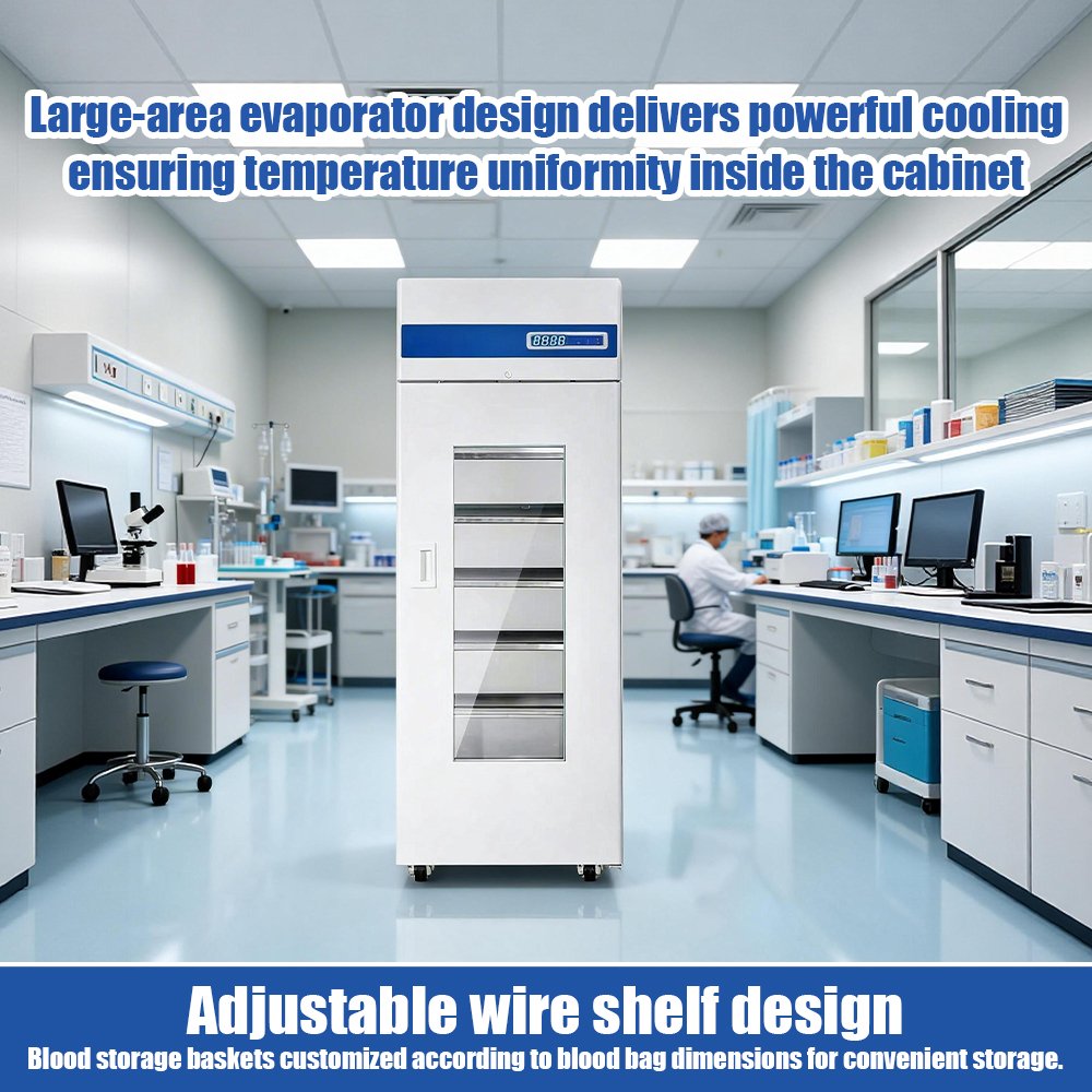 The 4±1°C Blood Bank Refrigerator is an essential lab and medical equipment, designed for safe, stable storage of blood, blood components, and vaccines. With precise temperature control (4±1°C), it ensures the viability and quality of stored samples, preventing degradation.