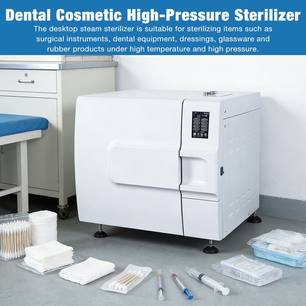 The 45L Dental Cosmetic High-Pressure Sterilizer is a specialized and efficient infection control device designed for dental clinics, cosmetic offices, and small medical facilities. It adopts high-pressure steam sterilization technology, safely and effectively eliminating a wide range of microorganisms, including bacteria, viruses, and fungi, to meet the strict hygiene requirements of dental and cosmetic treatments.