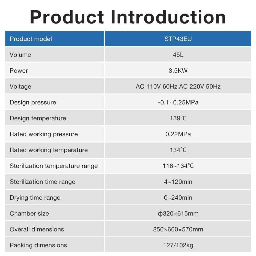 With a generous 45L capacity, it can accommodate various dental instruments, cosmetic tools, and small surgical supplies, meeting the daily sterilization demands of professional practices. Its compact and space-saving design is ideal for clinic countertops, optimizing workspace utilization without compromising performance.