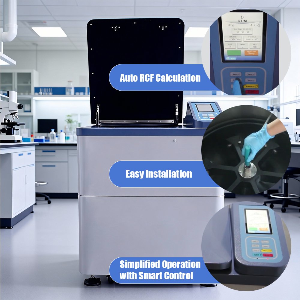 Key advantages include robust sample protection, high throughput, and operational versatility. Modern models feature user-friendly digital interfaces, programmable protocols, and advanced safety systems like imbalance detection, lid locks, and aerodynamic acoustic enclosures. By combining substantial capacity with precise control, this centrifuge is a cornerstone in biotechnology, pharmaceutical, clinical research, and industrial laboratories where large, viable samples are paramount.