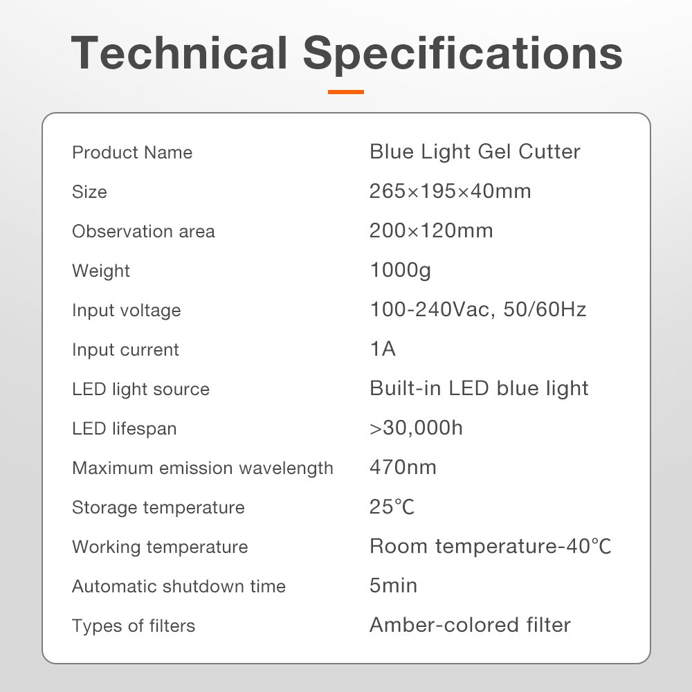 Blue Light Gel Cutter is an innovative laboratory instrument designed for the precise and contamination-free excision of gel samples. Utilizing a cool, focused blue light source, it eliminates the need for traditional UV transillumination, thereby protecting both the user from harmful UV exposure and the nucleic acid samples from potential degradation.