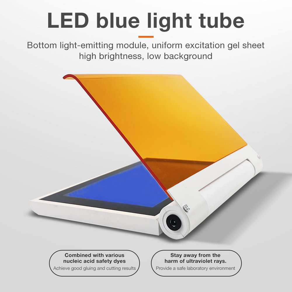 Blue Light Gel Cutter is an innovative laboratory instrument designed for the precise and contamination-free excision of gel samples. Utilizing a cool, focused blue light source, it eliminates the need for traditional UV transillumination, thereby protecting both the user from harmful UV exposure and the nucleic acid samples from potential degradation.