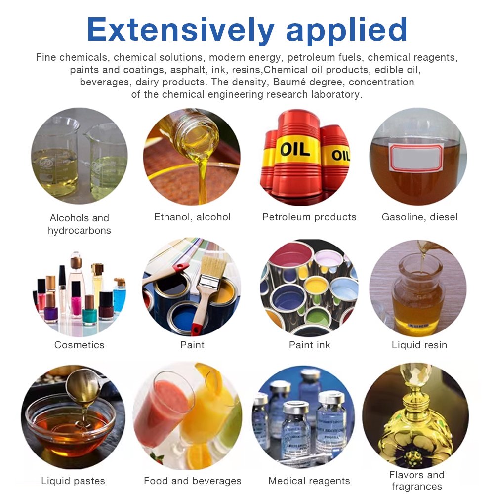 Electronic liquid density meter is a precision instrument designed to measure the density of liquids quickly and accurately. Utilizing advanced principles such as the oscillating U-tube method, it determines density by measuring the resonant frequency of a vibrating sample tube filled with the liquid. The higher the density, the lower the oscillation frequency.