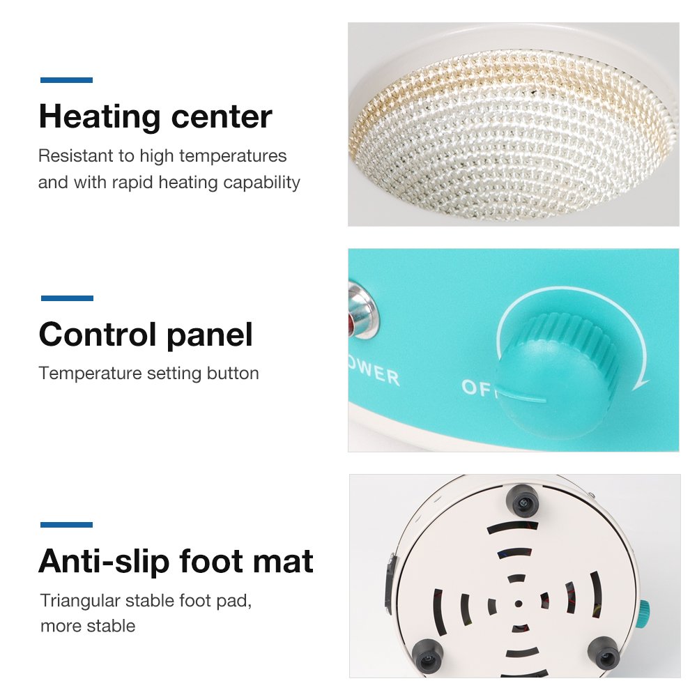 • Uniform Heating: The heating element, embedded in a fiberglass mantle, ensures even heat distribution, preventing hot spots.