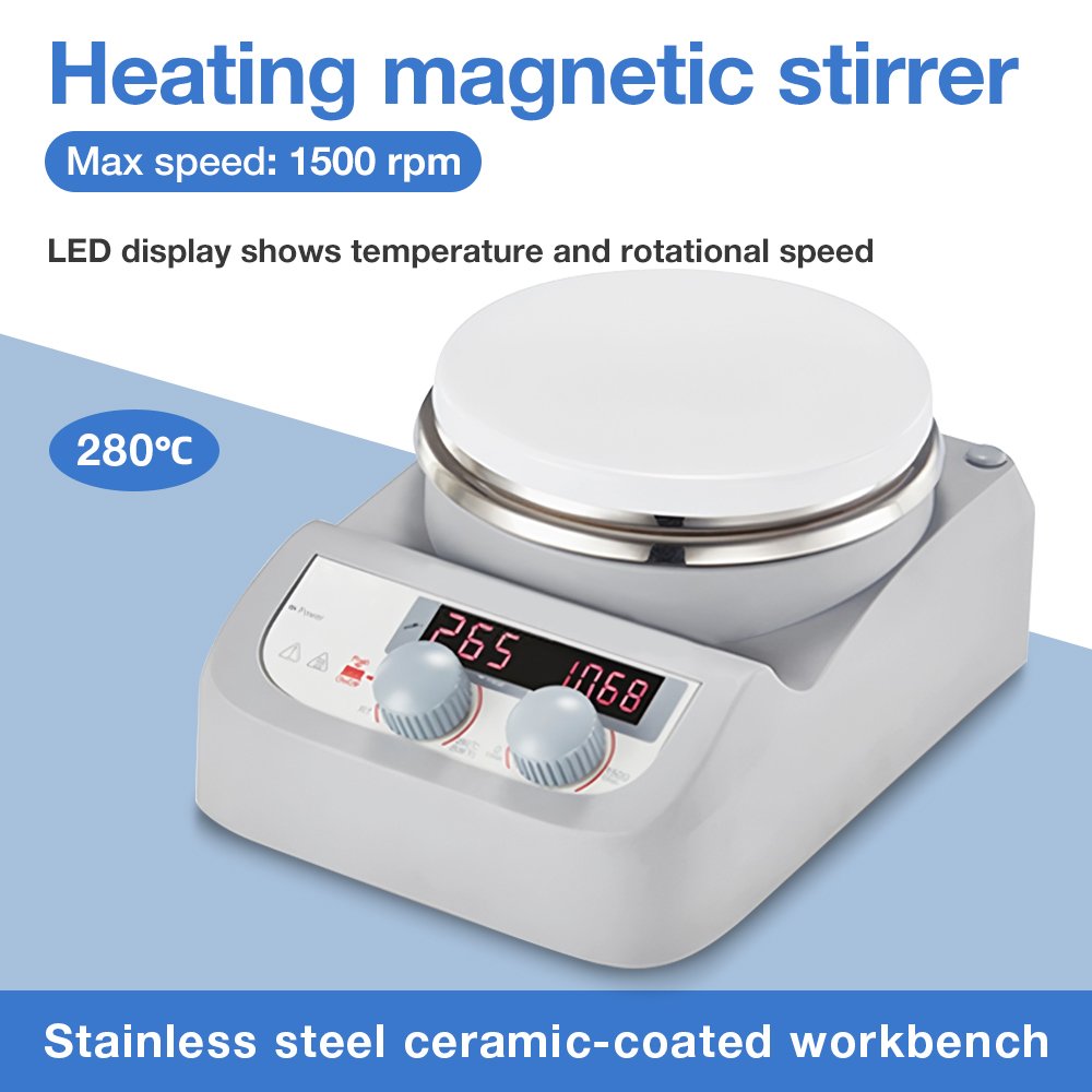 Magnetic stirrer is a laboratory device used to mix liquids efficiently and consistently. It consists of a rotating magnetic field generated by an electric motor beneath the platform, which drives a stir bar (a small magnet coated in inert material) placed inside the liquid. The stir bar spins, creating a vortex and ensuring thorough mixing. Magnetic stirrers are widely used in chemistry, biology, and pharmaceutical labs for tasks such as dissolving solids, homogenizing solutions, or conducting reactions. They are compact, easy to use, and often include heating elements for temperature control. Their non-invasive design minimizes contamination risks, making them ideal for sensitive applications. Magnetic stirrers are essential tools for achieving uniform mixtures in scientific experiments.