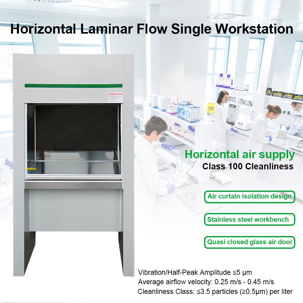 Horizontal/Vertical Laminar Flow Single Workstation is a precision clean-air enclosure designed to provide a contaminant-free workspace for sensitive processes in laboratories, medical facilities, and electronics manufacturing. Utilizing HEPA filtration, it ensures ISO Class 5 air purity by directing filtered air in either horizontal or vertical laminar flow, minimizing particle contamination.