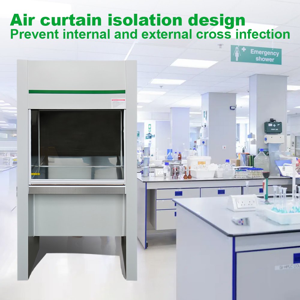 Ergonomic Design: Features a sash window, adjustable work surface, and low-noise operation .