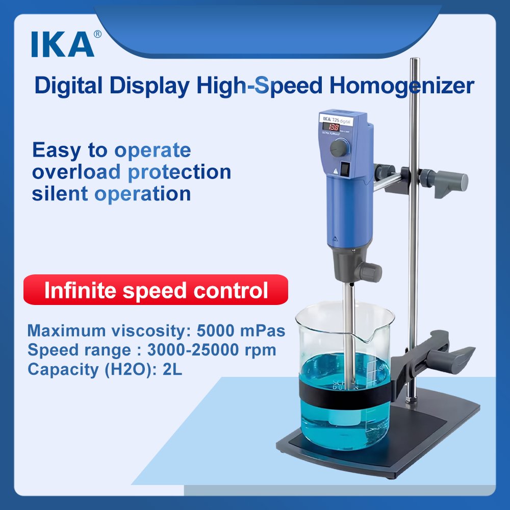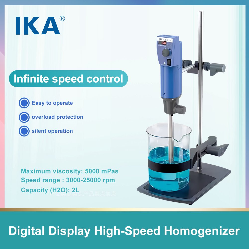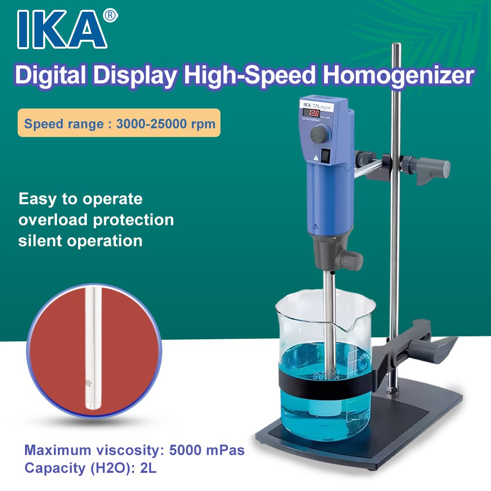 Digital Display High-Speed Homogenizer is an advanced laboratory and industrial instrument designed for efficient mixing, emulsifying, dispersing, and homogenizing of samples. Featuring a user-friendly digital interface, it allows for precise control and real-time monitoring of critical parameters such as speed (RPM), time, and torque. This ensures exceptional reproducibility and accuracy for a wide range of applications, from nanoparticle dispersion and cell lysis to the preparation of emulsions and suspensions.