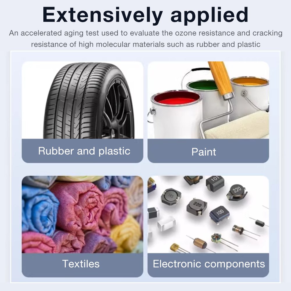 It replicates harsh outdoor/industrial ozone conditions in a sealed chamber, replacing years of natural exposure with controlled, accelerated testing. Equipped with intelligent digital control, it precisely adjusts ozone concentration (5–500 ppm, upgradable), temperatureand humidity , with real-time monitoring for accuracy.