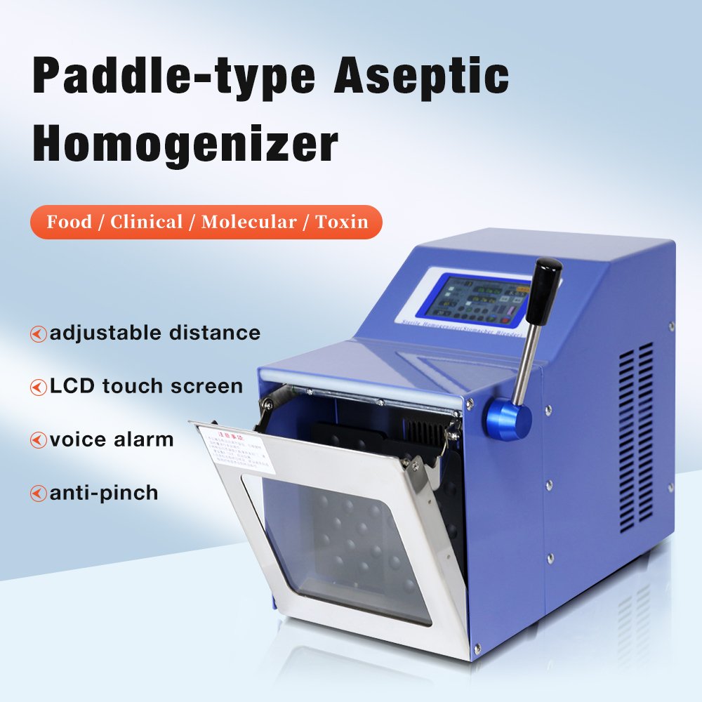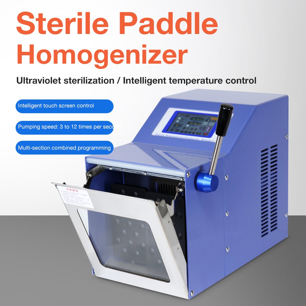 The Sterile Paddle Homogenizer is a professional laboratory equipment designed for uniform homogenization of solid, semi-solid, and liquid samples. It features a sterile paddle design, preventing cross-contamination and ensuring sample integrity—critical for microbial testing and quality control.