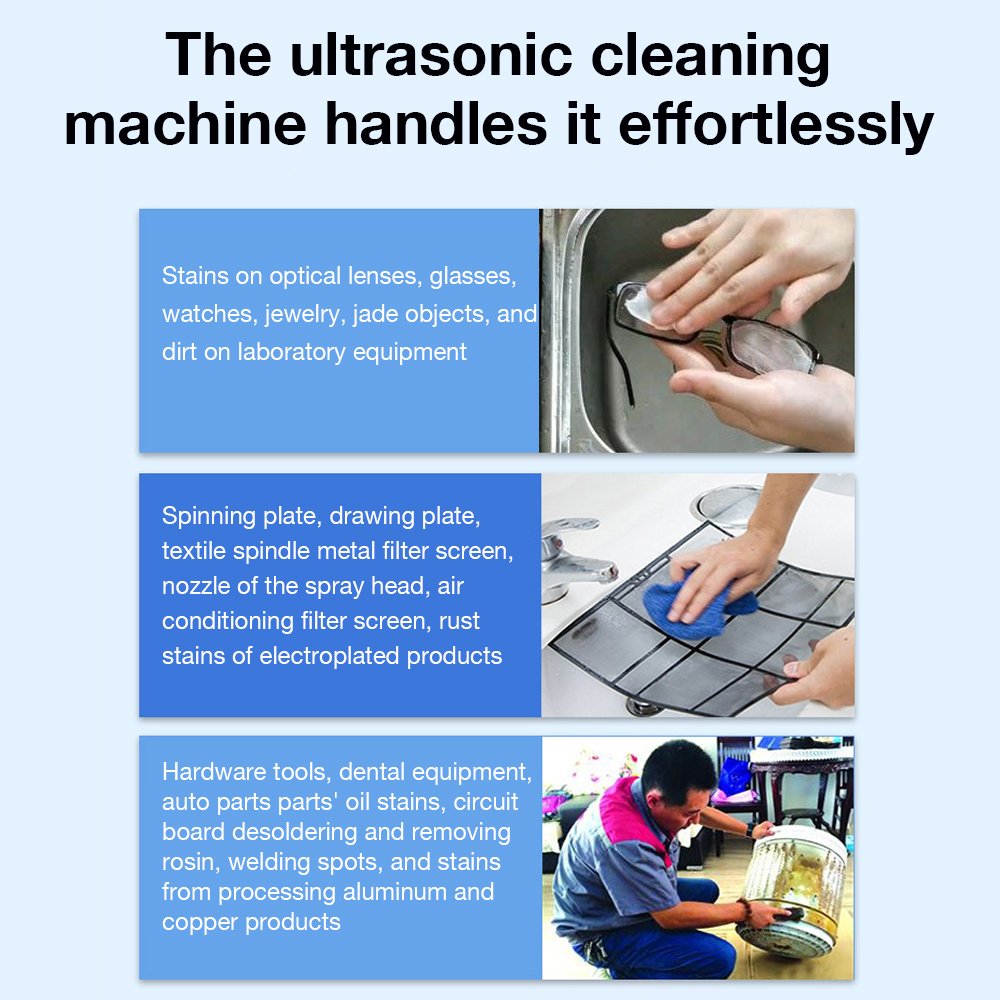 This method is exceptionally effective for cleaning complex items where manual brushing is impractical, such as jewelry, watches, surgical instruments, dental tools, electronic components, and optical lenses. The key advantage of ultrasonic cleaning is its ability to provide a consistent, non-abrasive clean without causing damage to fragile parts. It is widely used across various industries, including healthcare, manufacturing, jewelry, and dentistry, for its precision, speed, and superior results compared to traditional cleaning methods. By ensuring deep and uniform cleanliness, ultrasonic cleaners have become an indispensable tool for maintenance and hygiene.